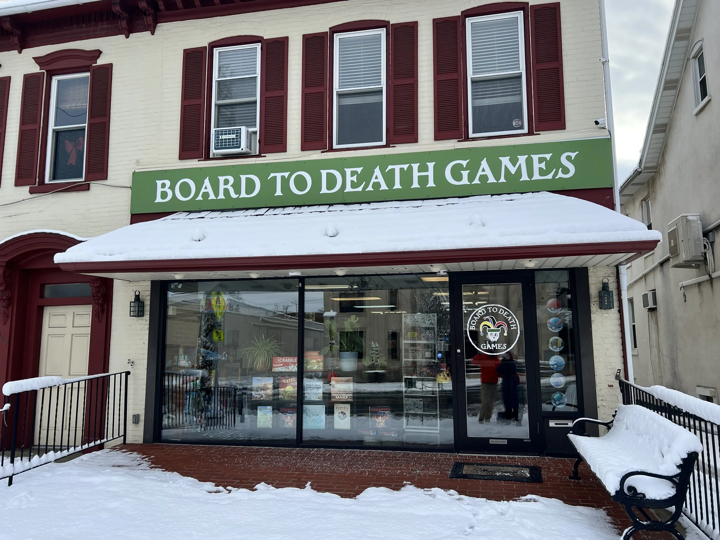 Board to Death Games is located at the Triangle in Emmaus! We’re open 5 days a week selling board games, cards and more! We also have tables to hang out and try out games for free and we host board game nights weekly. Come say hi!